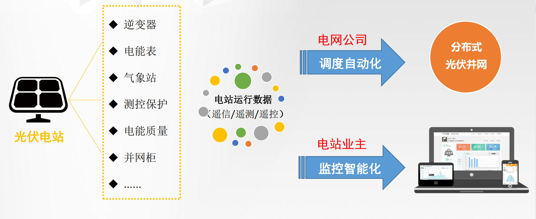 分布式光伏電站投產(chǎn)后歸地調(diào)與縣調(diào)調(diào)度運(yùn)行管理,相關(guān)信息上傳至地調(diào)與縣調(diào)。發(fā)送的信息應(yīng)滿足電網(wǎng)調(diào)度自動(dòng)化系統(tǒng)的規(guī)約和可靠性要求,涉網(wǎng)設(shè)備選型應(yīng)與當(dāng)?shù)仉娏ΜF(xiàn)有自動(dòng)化系統(tǒng)相匹配。